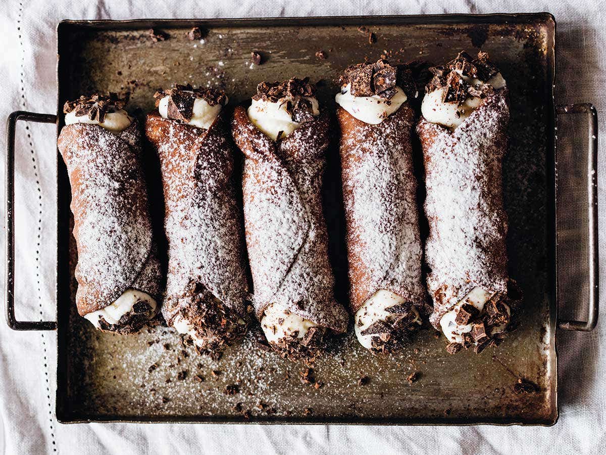 Two days resting in the fridge helps cannoli dough become light and bubbly. You will need cannoli molds for frying. Serve within a few hours, before the shells soften. Get the recipe for Ginger and Cocoa Nib Cannoli »