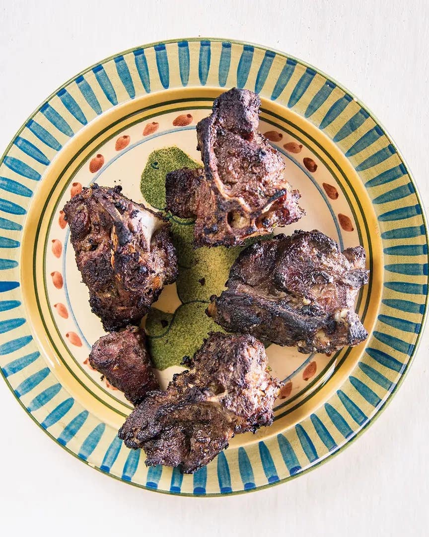 A classic jerk marinade is perfumed with rosemary and slathered over lamb loin chops for a surprising take on the iconic chicken preparation. The soy sauce in the marinade boosts the lamb's umami flavors.