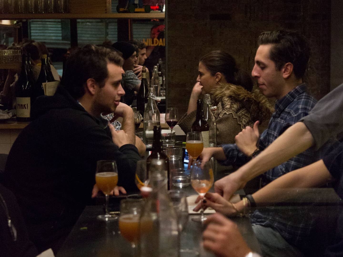 Finally a wine bar where the food isn't an afterthought. This buzzing, brick-lined Lower East Side storefront jammed with bar-height communal tables and Prouvé-ish stools isn't the plushest dining room in New York, but it might be the most fun. Wine guru Jorge Riera works the room with an oversized bottle of pét-nat (natural sparkling wine) while his partners, chefs Jeremiah Stone and Fabian von Hauske, keep the hits coming from a frantic little semi-open kitchen: bites of Mangalitsa soppresatta; a soupy-crunchy toast of littleneck clams, spinach, and lardo; fried squid and sweet onions dipped in a dark pool of squid-ink aïoli. These guys are freewheeling enablers of laid-back good cheer. The tastes are adventurous, never boring, and the whole enterprise feels, like the wine, alive. Wildair, 142 Orchard St., New York City
