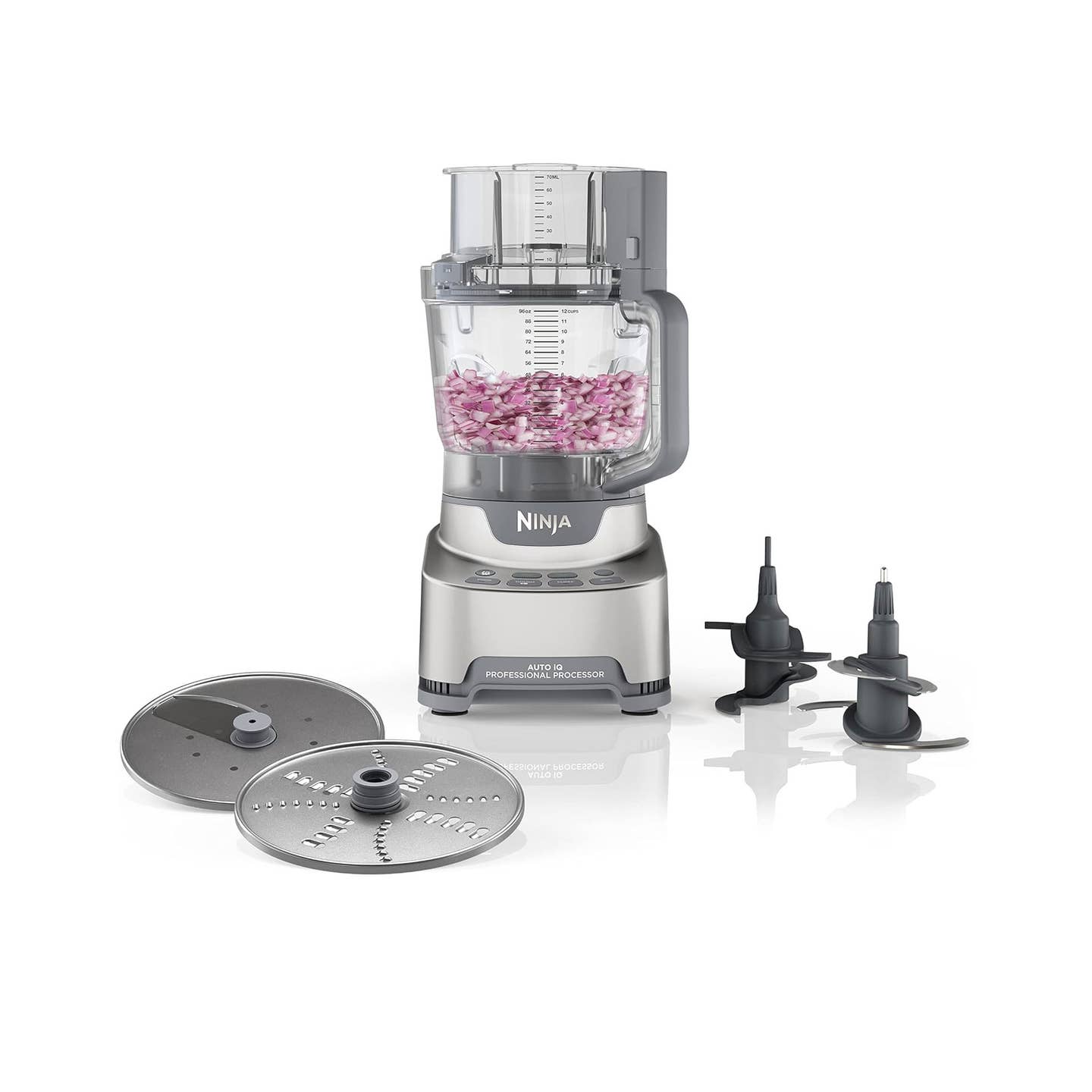 Thanks to its powerful 1200-watt motor, this 12-cup food processor can chop, slice, shred, purée, and mix dough lightning fast. With multiple blades spinning at the same time and an extra-large feed chute, the appliance makes quick work of countless kitchen tasks. It also comes with a slicing disc and a dual shredding disc (for fine or coarse grating), all of which can be popped into the dishwasher for speedy cleanup.